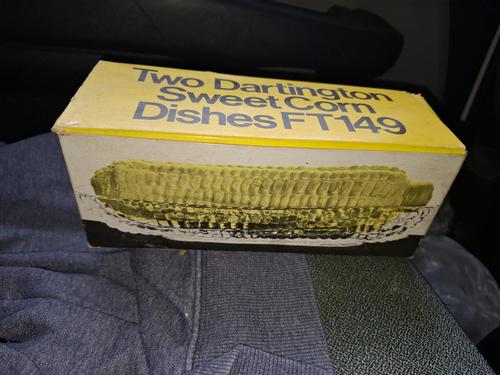 A Pair Of Vintage 1970's Dartington Glass Sweet Corn Dishes - Original Packaging